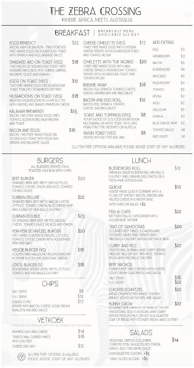 Welcome to Zebra Crossing, a delightful café nestled in Buderim, Australia. This hidden gem serves a unique twist of South African flavors that will tantalize your taste buds.